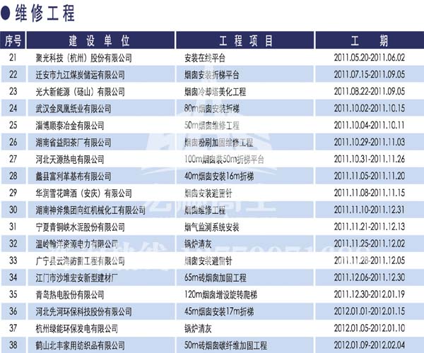 宏順建設(shè)工程有限公司是國家批準(zhǔn)成立的專業(yè)高空作業(yè)企業(yè):承攬過(國內(nèi).國外)煙囪新建、煙囪防腐、吊機防腐、水塔防腐、管道防腐、龍門吊防腐、儲存罐防腐、煙囪內(nèi)壁防腐等高空作業(yè)工程。具有“不搭腳手架 、 不需要停產(chǎn)”施工特點。